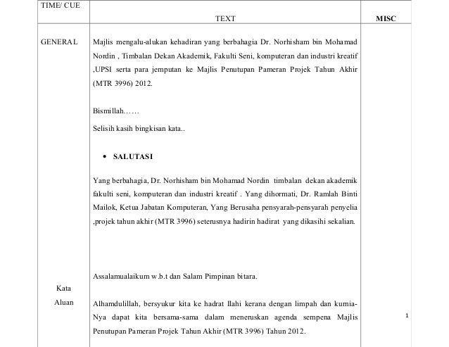 Teks Mc Untuk Pameran Projek Akhir Fskik via www.slideshare.net